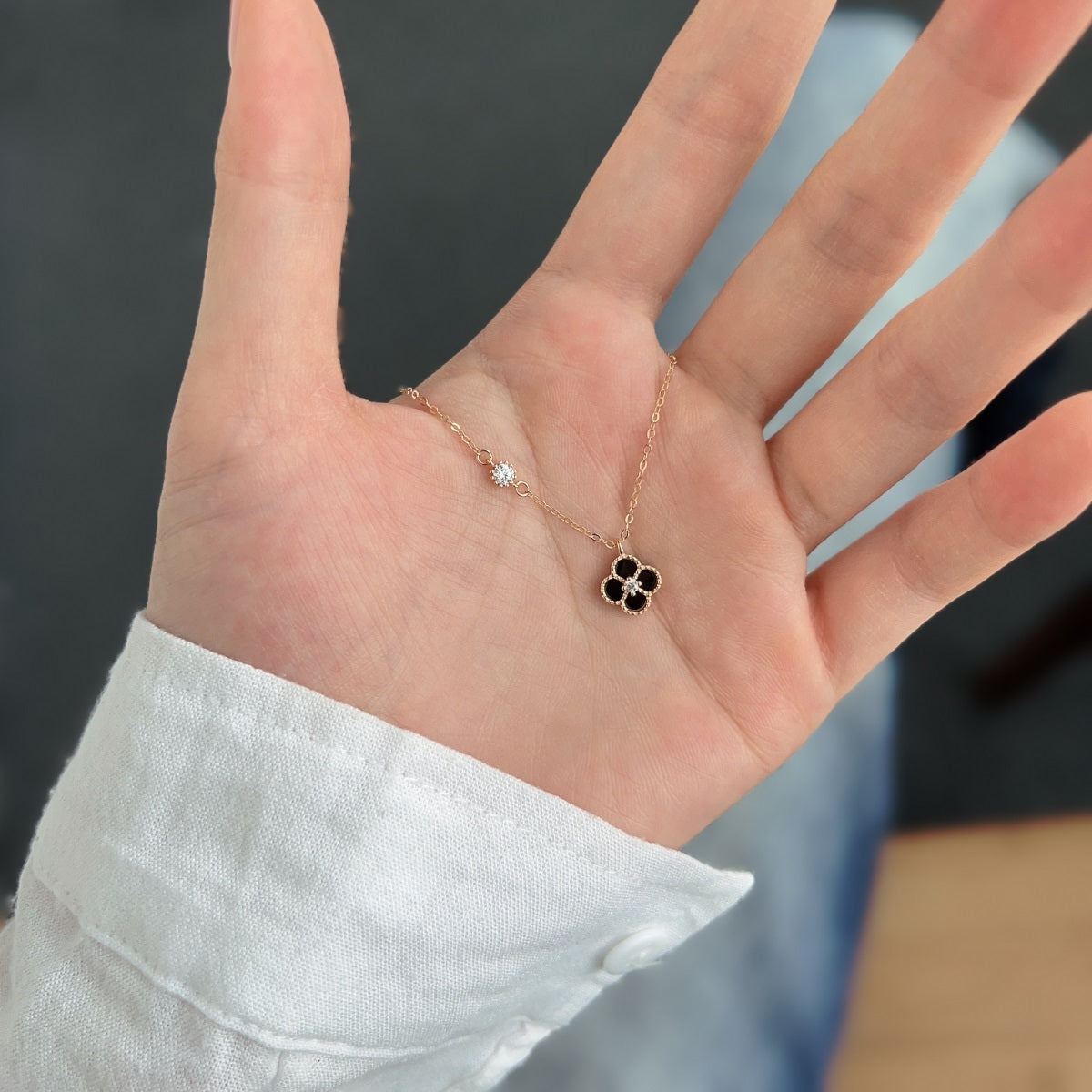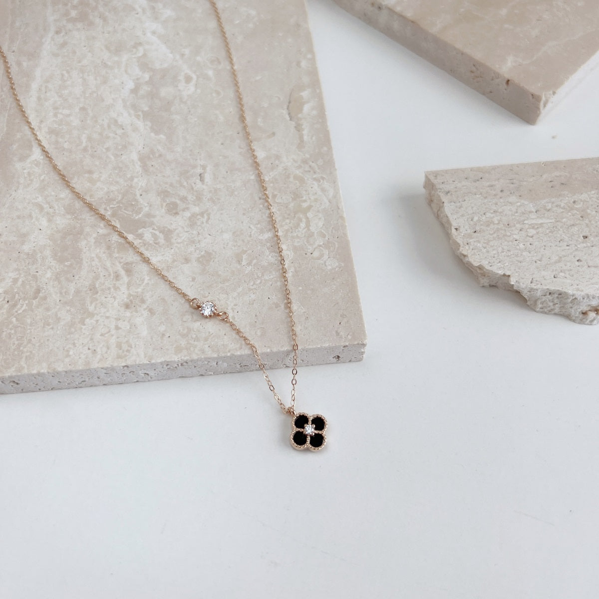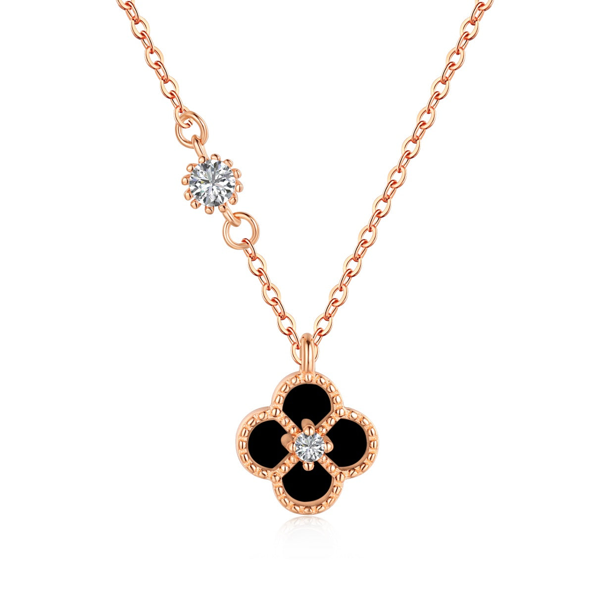 Cadena baño Oro rosa dije Trebol Onix negro