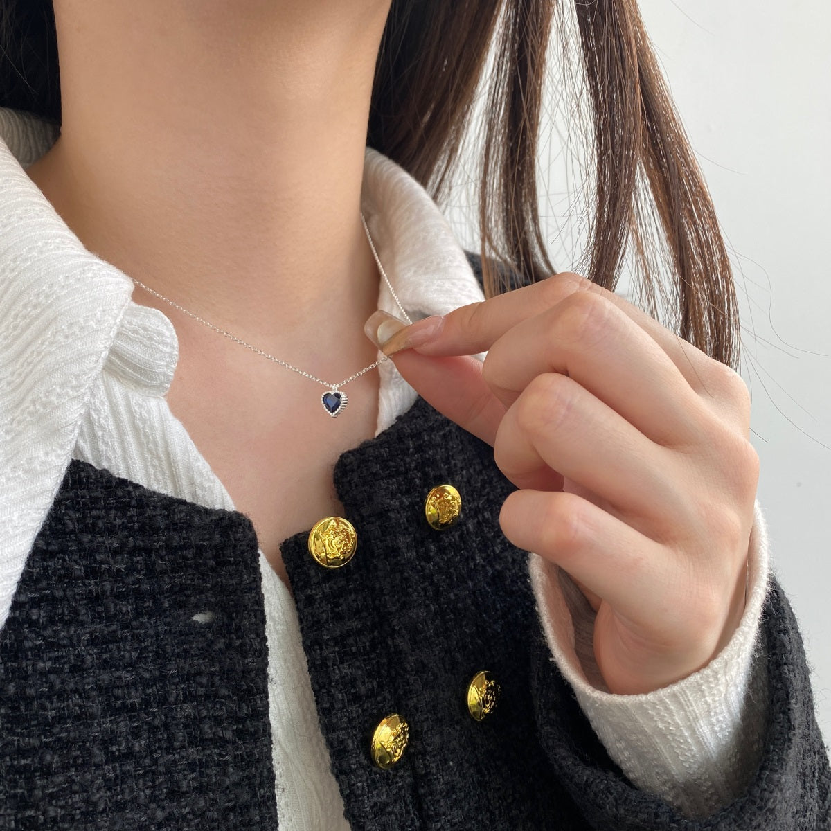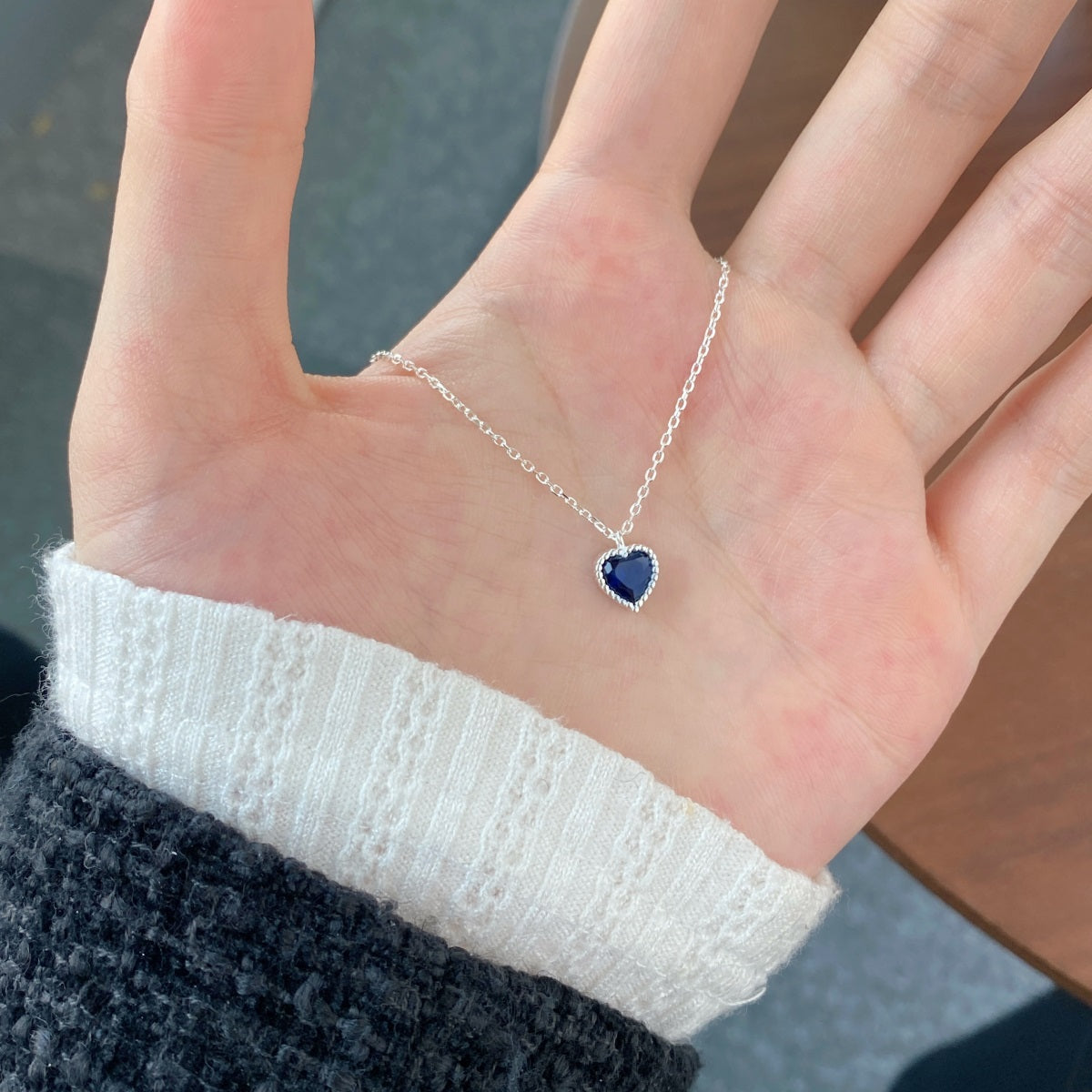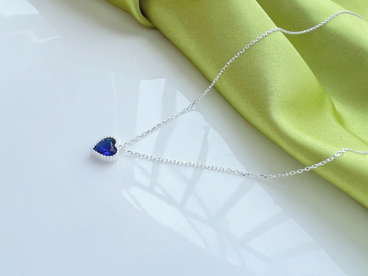 Cadena plata con dije de Zirconia corazón azul Indigo